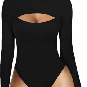 MANGOPOP Mock Neck Sexy Cutout Front T Shirt Sleeveless/Long Sleeve Bodysuit for Women |