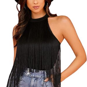 Verdusa Women's Fringe Trim Sleeveless Bodycon Halter Bodysuit Top |